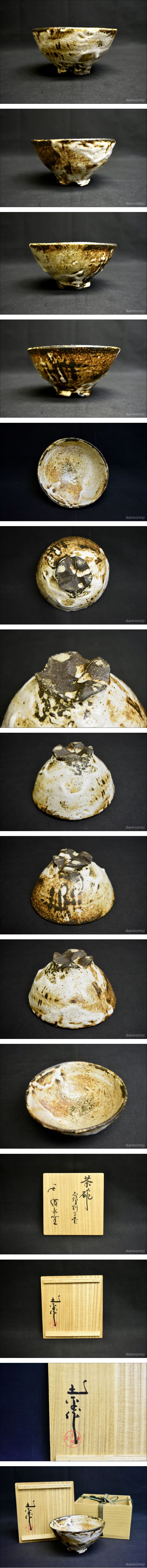 <大文字>坪島土平 造 志野割高台茶碗 廣永窯 川喜田半泥子師事 共箱無傷本物保障